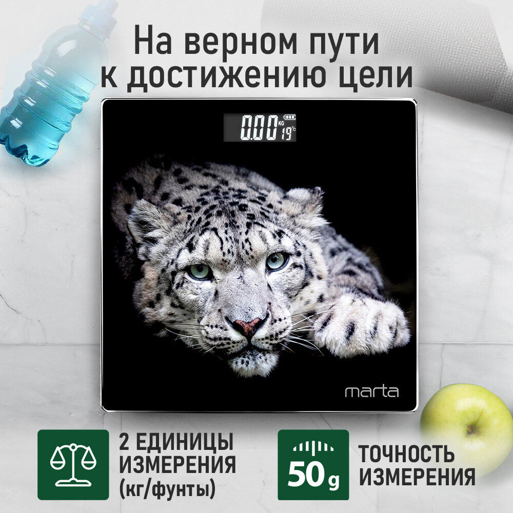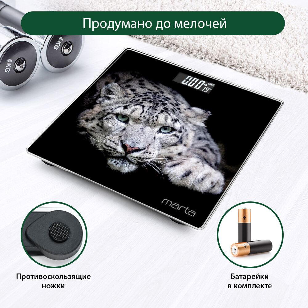 Весы напольные MARTA MT-1678 снежный барс интересное: