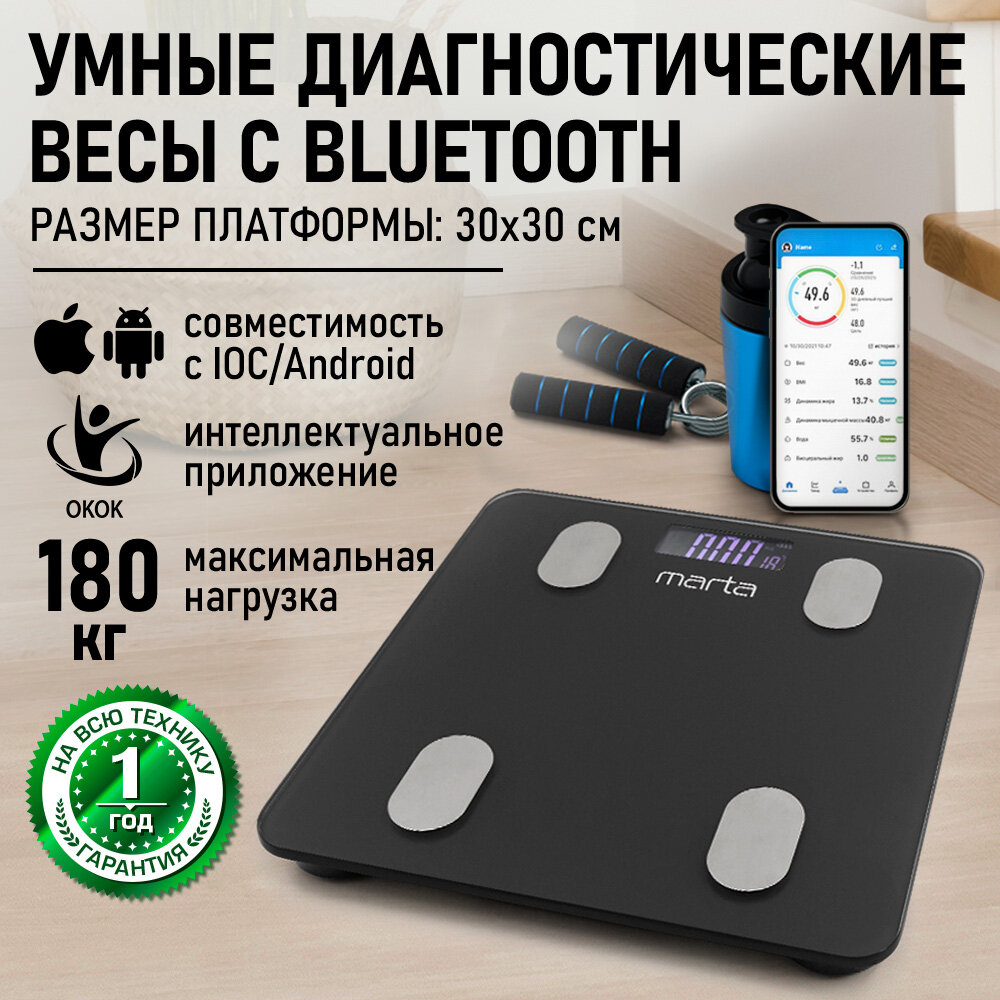 Весы напольные умные MARTA MT-1607 серый графит интересное: