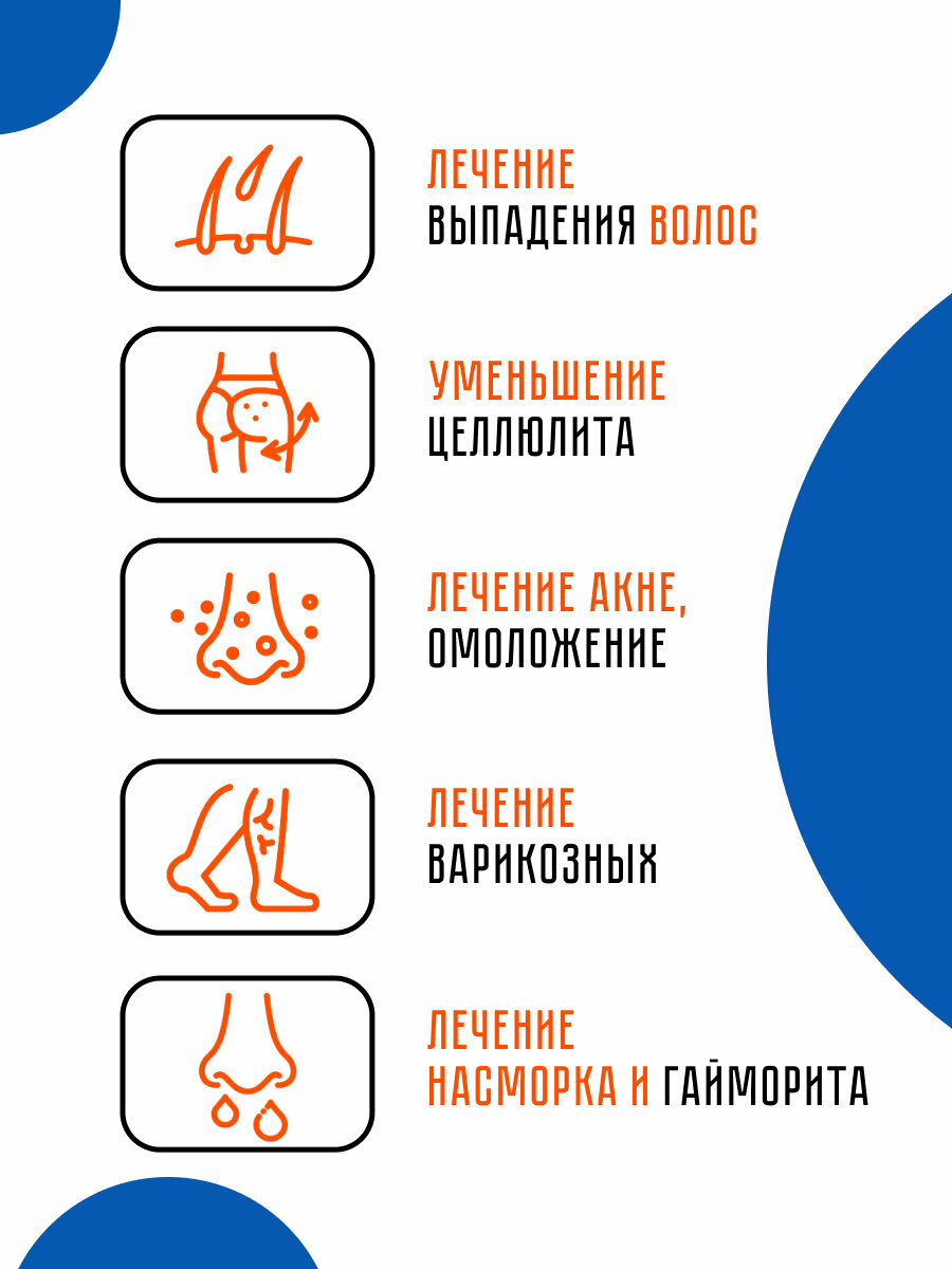 | Назначение | улучшение состояния волос / антицеллюлитный уход / антивозрастной уход / лечение акне |