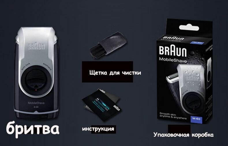 Электробритва BRAUN MobileShave M-90, черный и серебристый