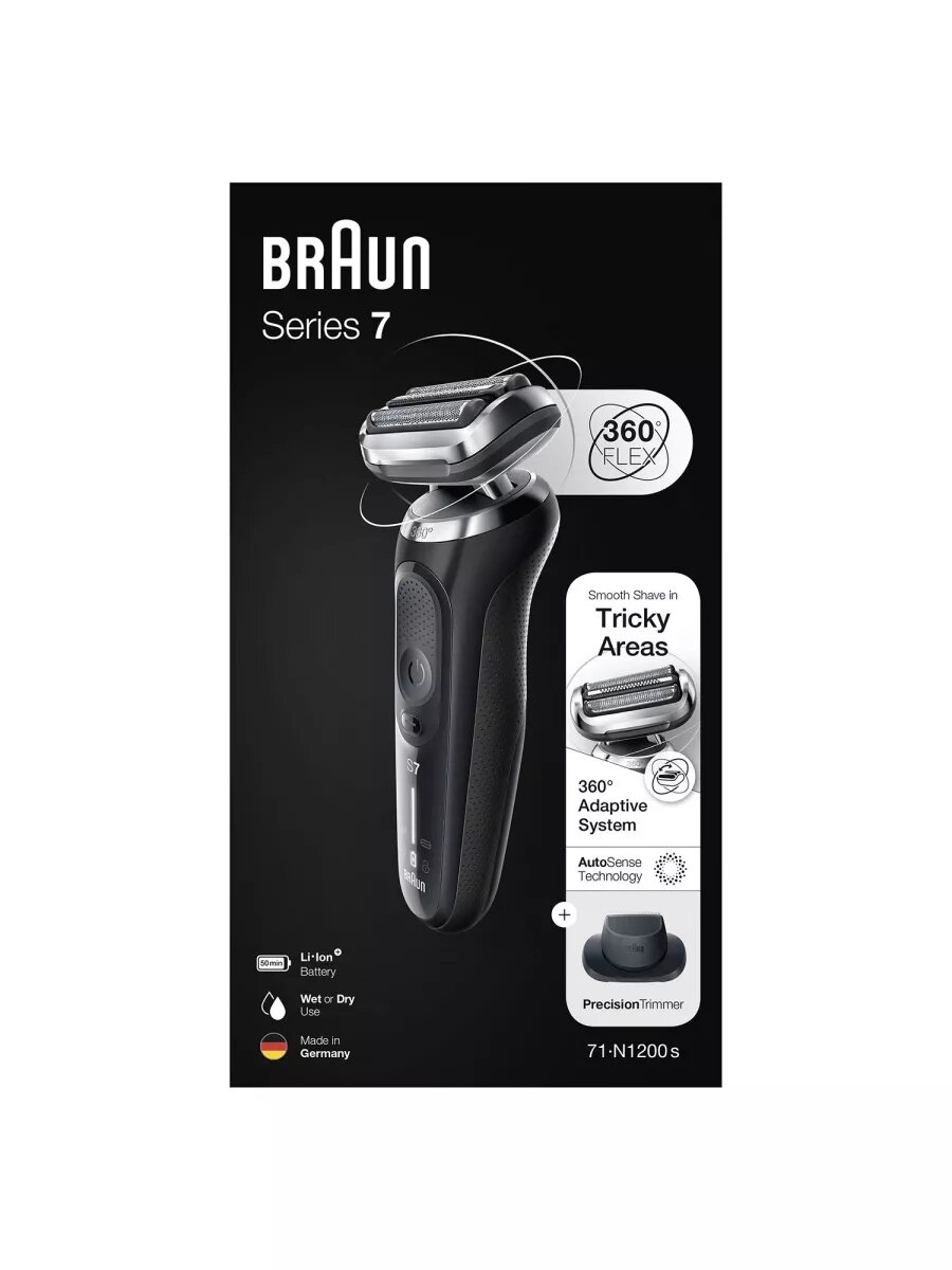 Купить Электробритва Braun Series 7, 71-N1200S, сеточная, EU Plug, влажная и сухая, 50мин, черная