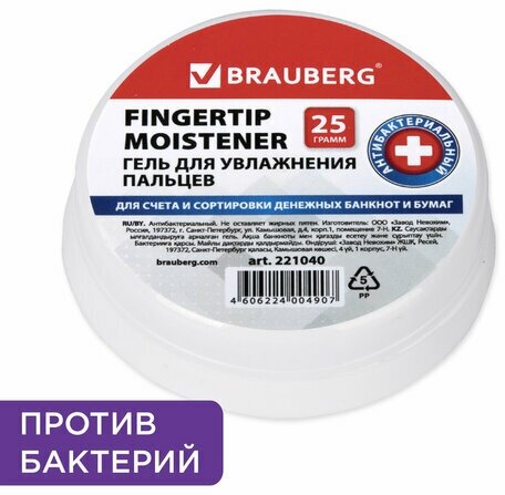 Гель для увлажнения пальцев антибактериальный BRAUBERG, 25 г, Россия, 221040, 221040