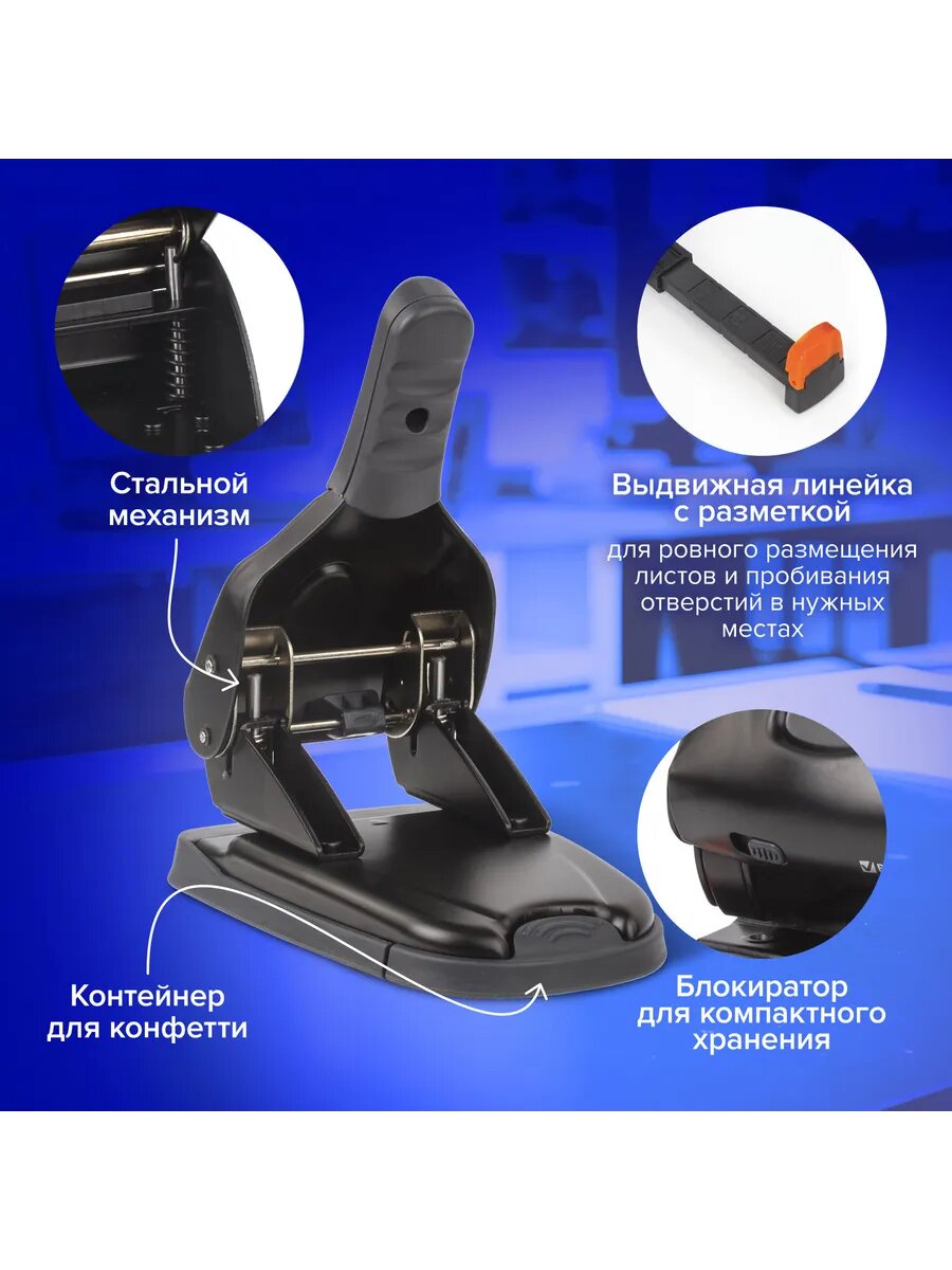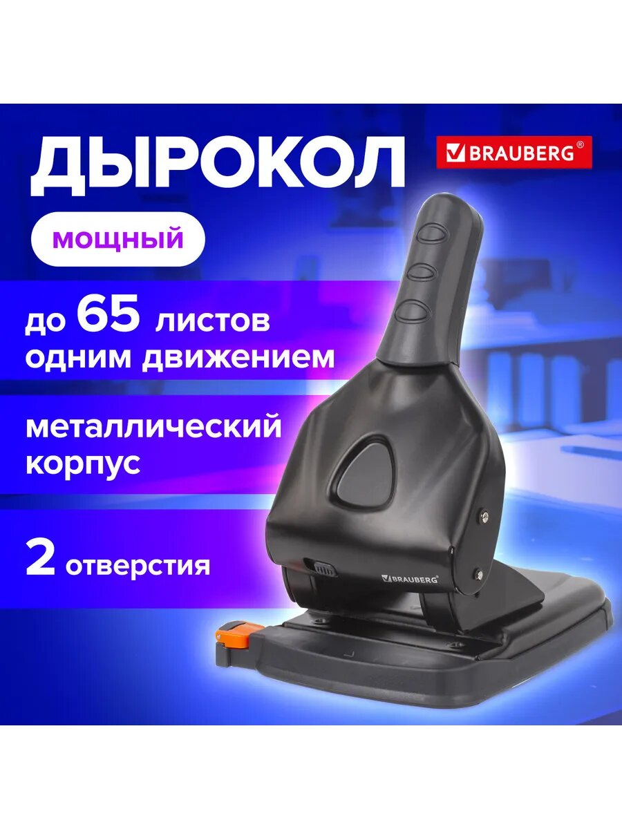 Квант продажи 1 ед. Дырокол металлический мощный BRAUBERG «Heavy duty» до 65 листов, эргономичный, черный