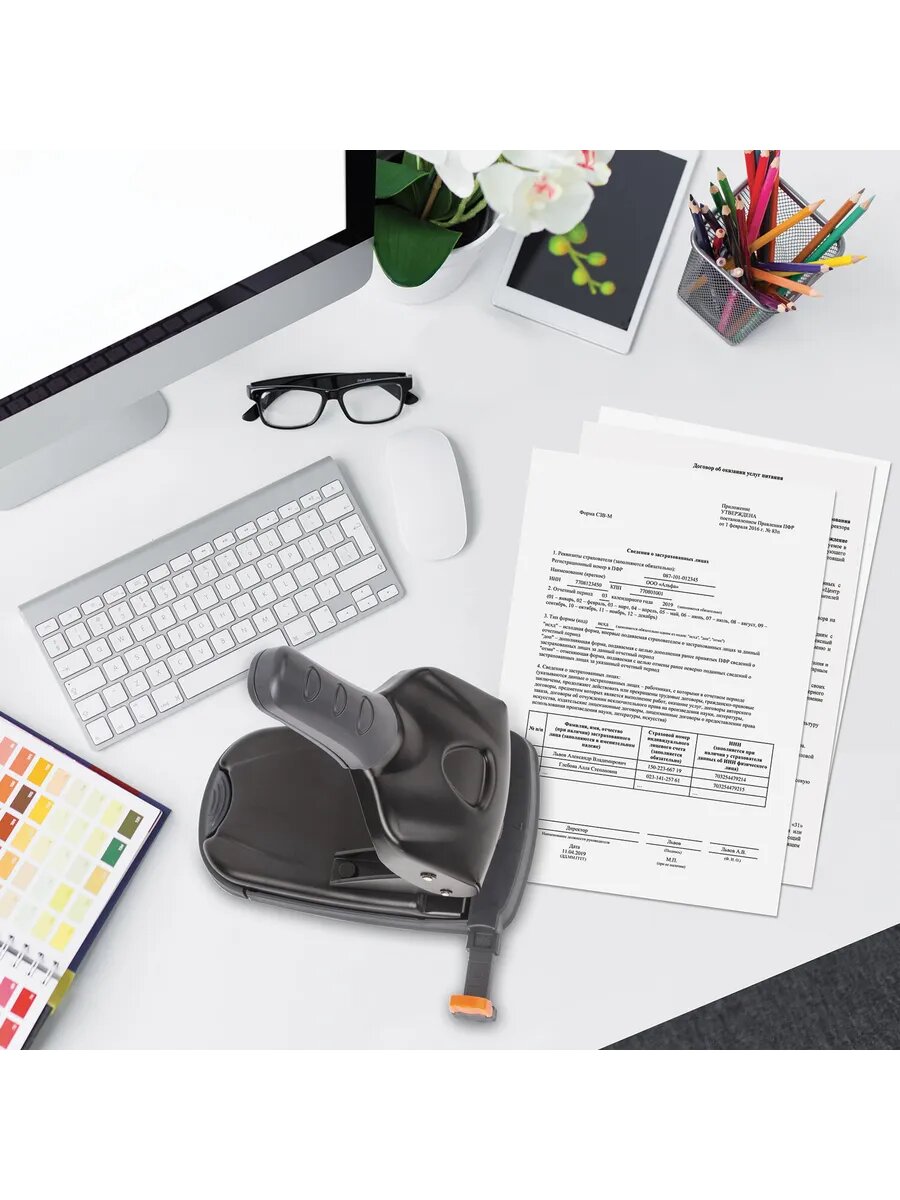 | Минусы: | Кнопка складывания дыракола сломалась после недели использования, неверная раз ёрная линейка пр прокол на 4 отверстия (дыры не соответствуют папке-скоросшивателя) |