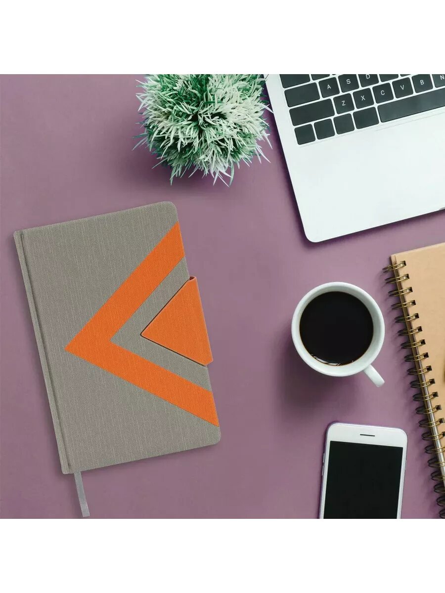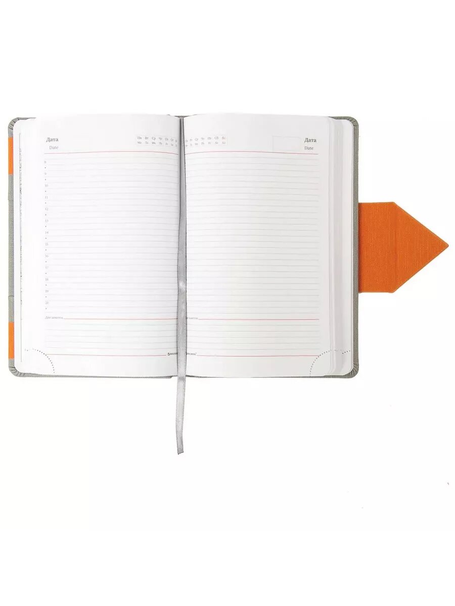 Ежедневник недатированный А5 (138x213 мм) BRAUBERG "Waves", 160 л., кожзам, серый/оранжевый, 111877