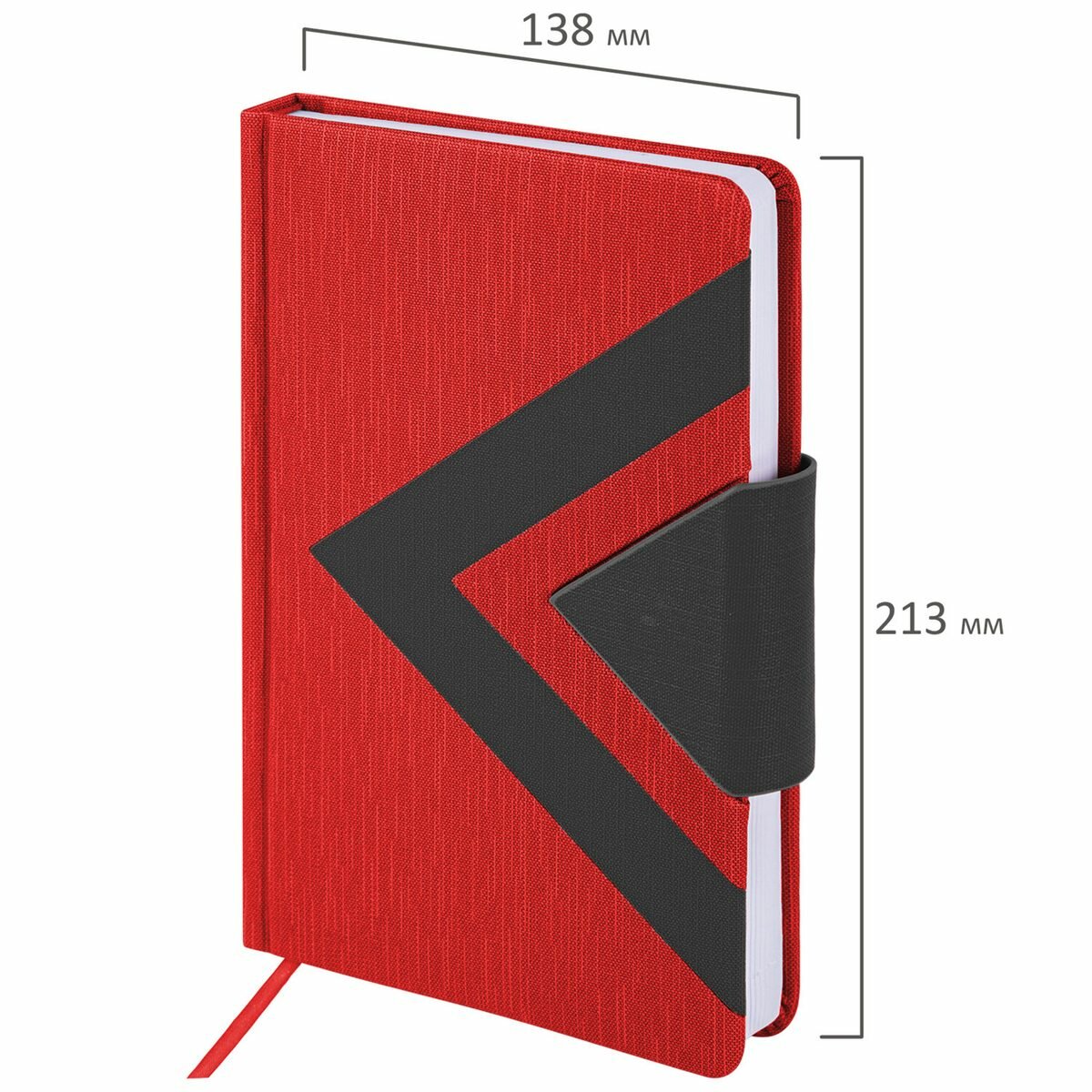 Ежедневник недатированный А5 138x213 мм BRAUBERG "Waves" под кожу, застежка 160 л., красный/черный, 111874 Комплект - 1 шт .
