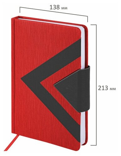 Ежедневник недатированный А5 138x213 мм BRAUBERG "Waves" под кожу, застежка 160 л., красный/черный, 111874 Комплект - 1 шт .