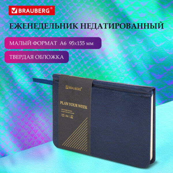 Еженедельник-планер (планинг) / записная книжка / недатированный с резинкой (171х93 мм), Brauberg, твердый переплет, Уф-лак, 64 листов, Blur, 114576