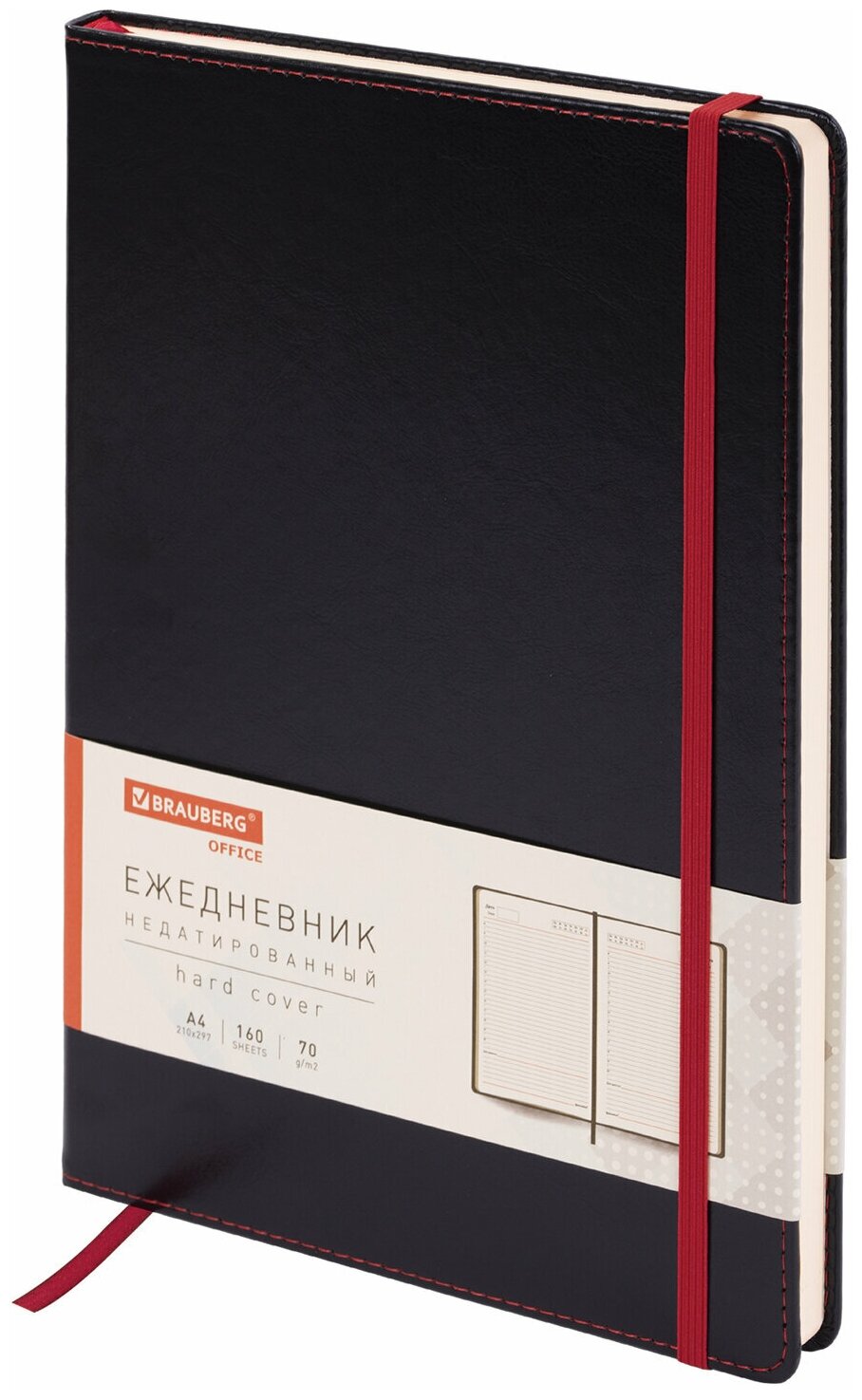 113285, Ежедневник недатированный большой формат 210х297 мм А4, BRAUBERG Office, 160 л., черный, 113285
