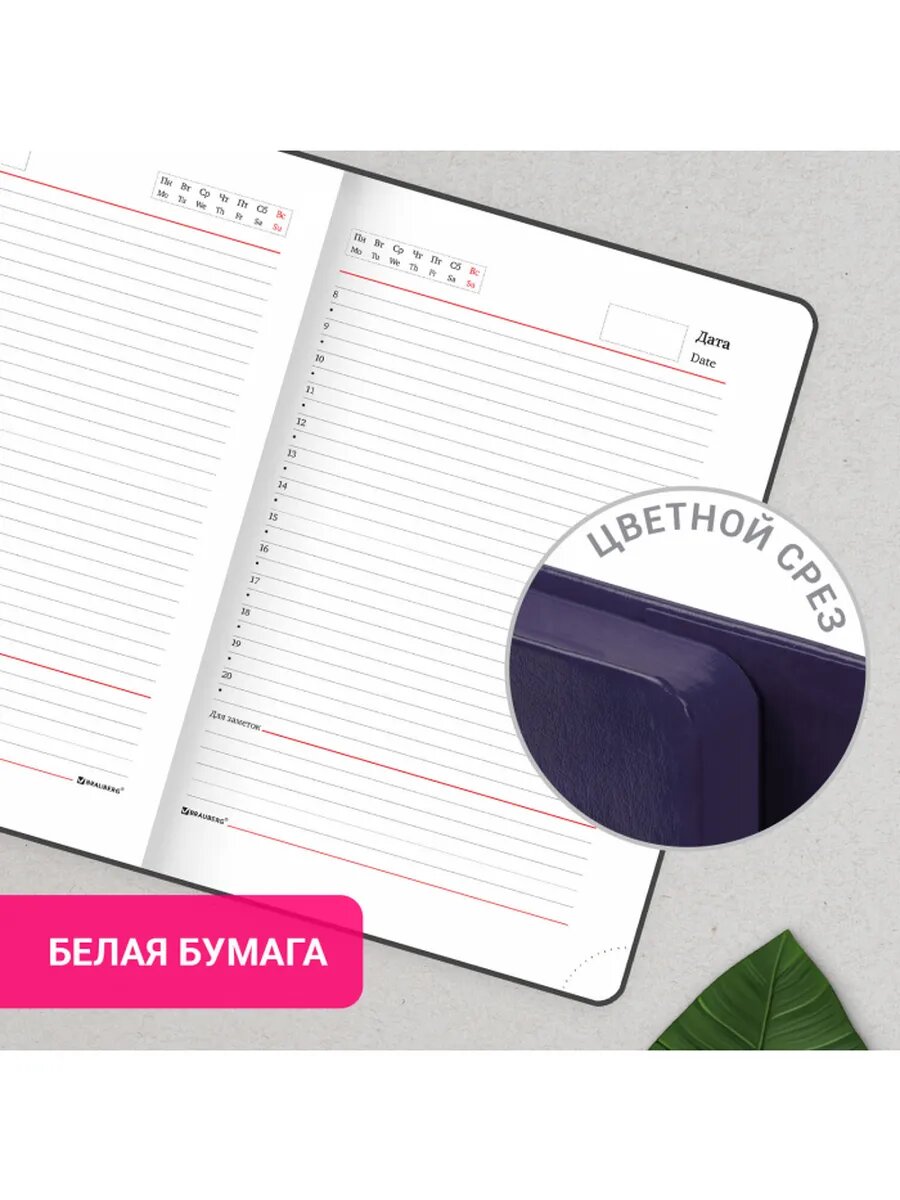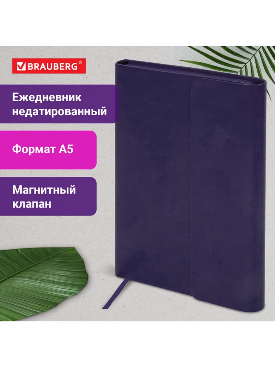 Ежедневник с магнитным клапаном недатированный под кожу А5 фиолетовый, BRAUBERG Magnetic, 113282