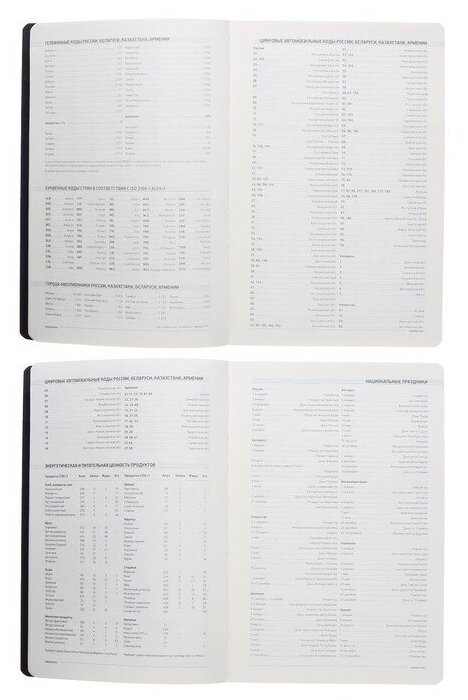 | Дополнительная информация | Ляссе;Отрывные уголки;Справочная информация;Закладка;Без полей;Телефонная книга;Доп. горизонтальные линии;Дневное планирование;Цветной обрез; вес 610 г |