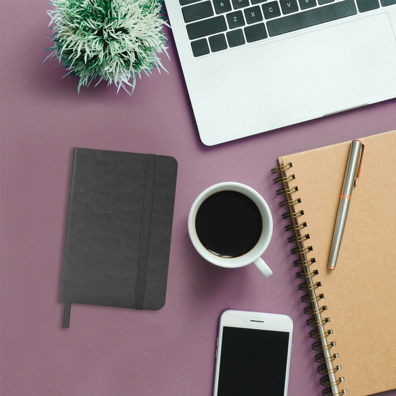 Комплект 5 шт, Ежедневник недатированный с резинкой 100х150мм А6 под кожу черный BRAUBERG Metropolis, 113300