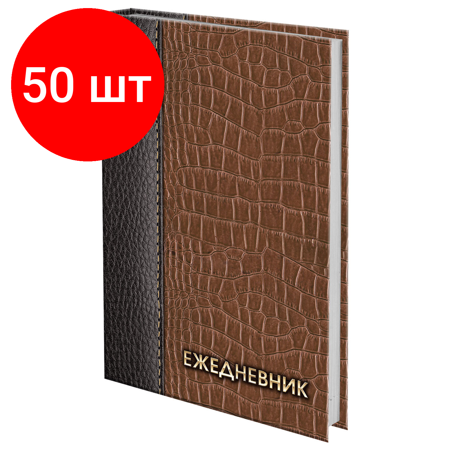 Комплект 50 шт, Ежедневник датированный на 4 года А5 145х215 мм BRAUBERG ламинированный 192 л., "Кожа коричневая", 121590