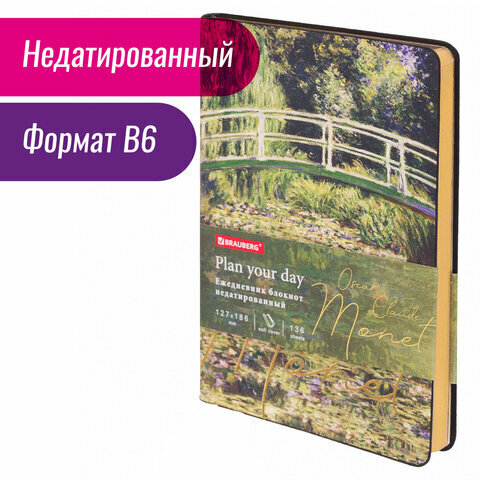 СохранитьЕжедневник недатированный B6 (127х186 мм), BRAUBERG VISTA, под кожу, гибкий, срез фольга, 136 л, "Claude Monet", 112103 интересное: