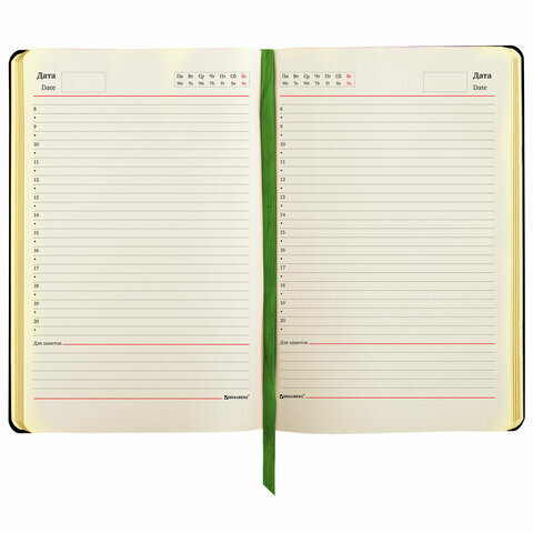 | Плюсы: | Приятная кожаная обложка. бумага страниц молочная. Не белая, и именно для него это +. Удобного размера, можно носить в сумке. С календарем и доп информацией на страницах |