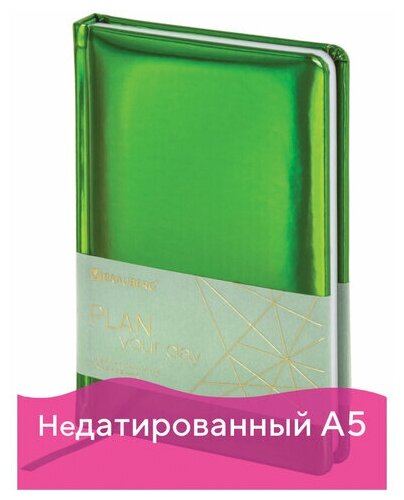 Ежедневник недатированный А5 (138x213 мм) BRAUBERG "Holiday", кожзам, 136 л., зеленый, 111672