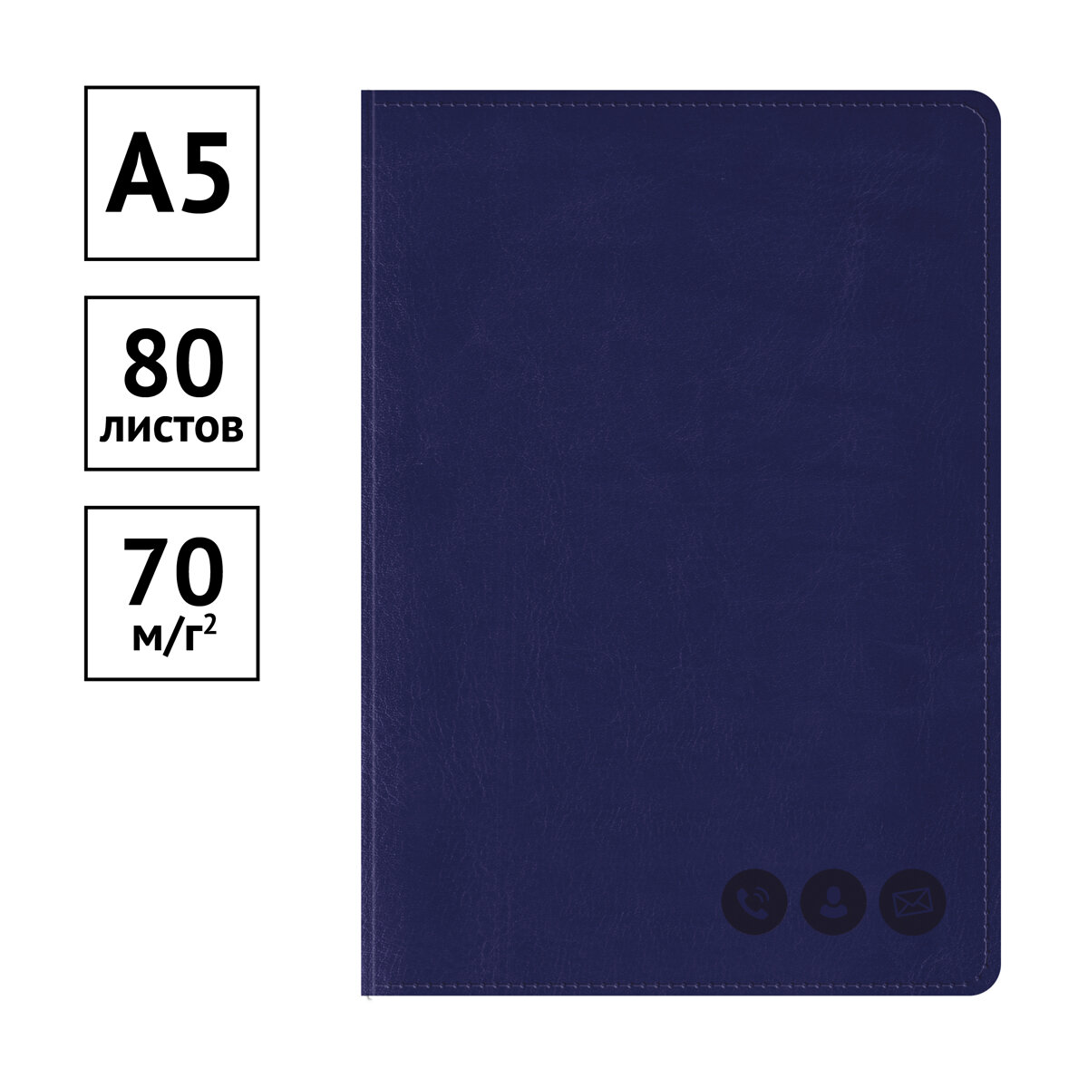 Купить Телефонная книга А5, 80л, кожзам, OfficeSpace "Nebraska" темно-синий, с вырубкой 326519