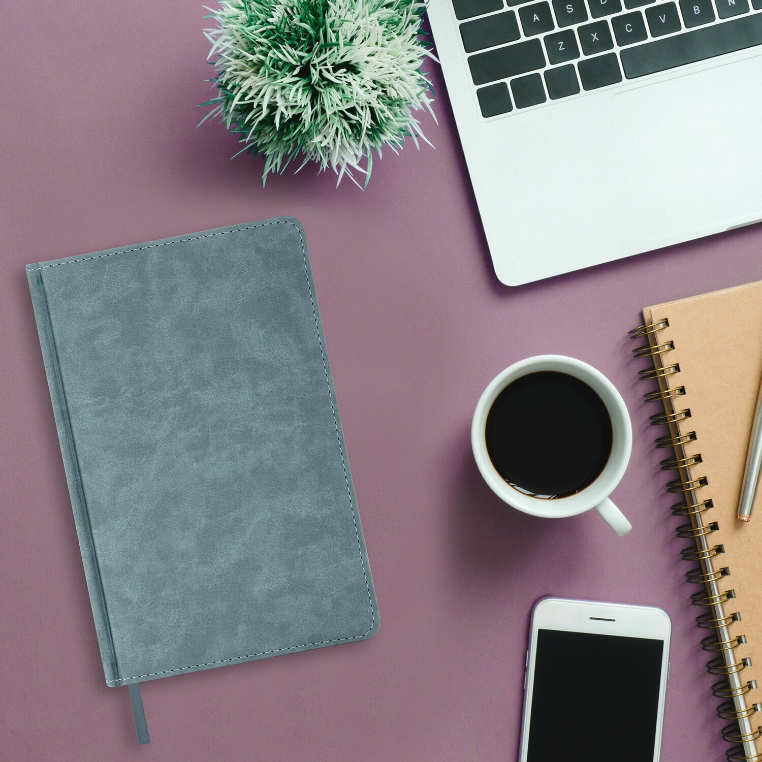 Ежедневник-планер (планинг) / записная книжка / блокнот недатированный А5 138х213 мм Brauberg Status, под кожу, 160 л., серо-голубой, 113365