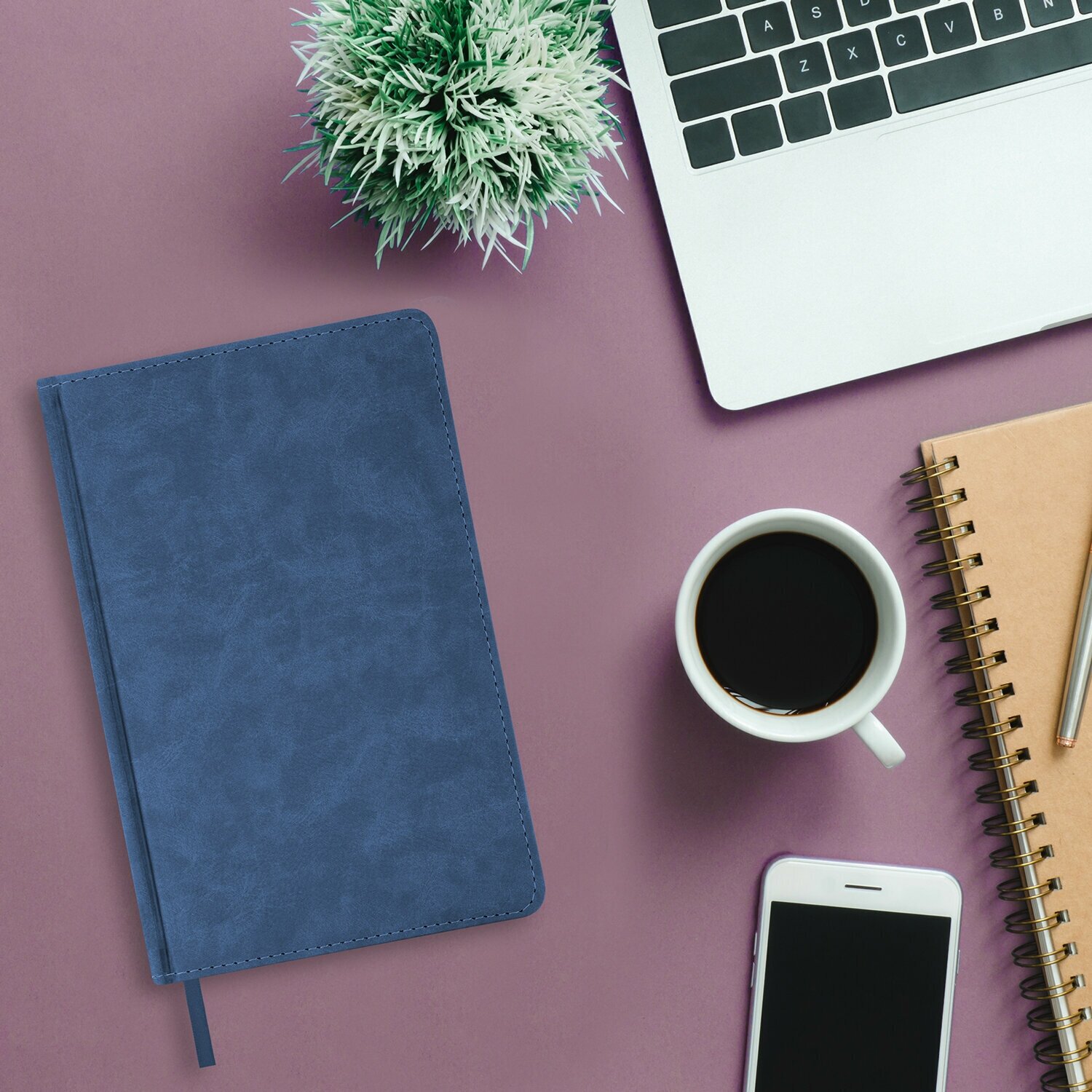 Ежедневник-планер (планинг) / записная книжка / блокнот недатированный А5 138х213 мм Brauberg Status, под кожу, 160 л., темно-синий