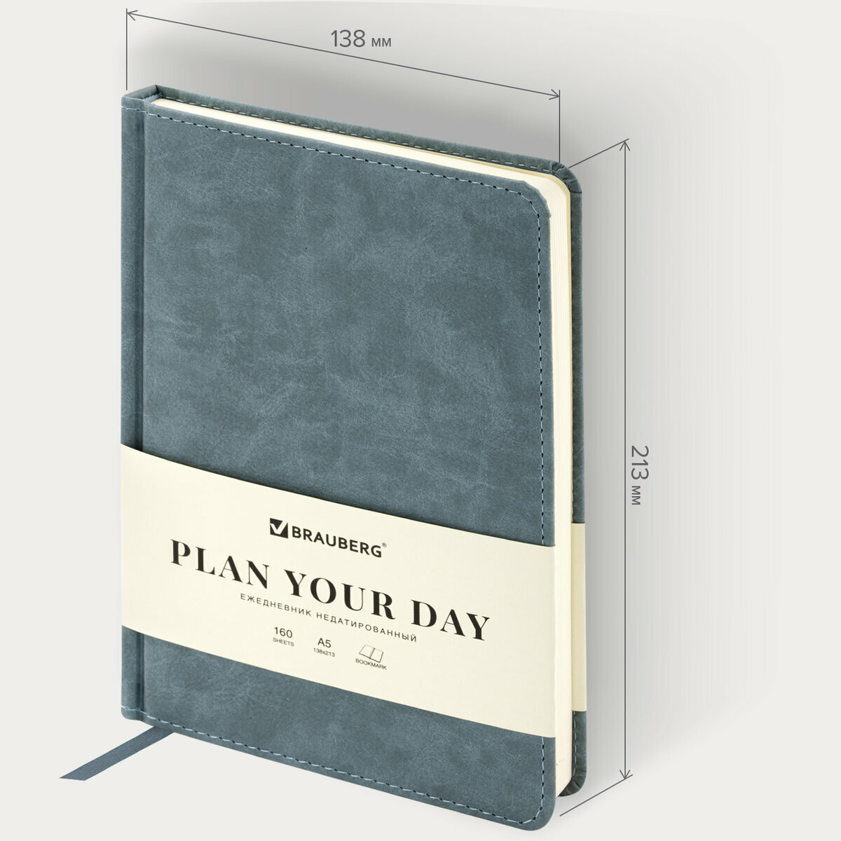 Ежедневник-планер (планинг) / записная книжка / блокнот недатированный А5 138х213 мм Brauberg Status, под кожу, 160 л, серо-голубой, 113365