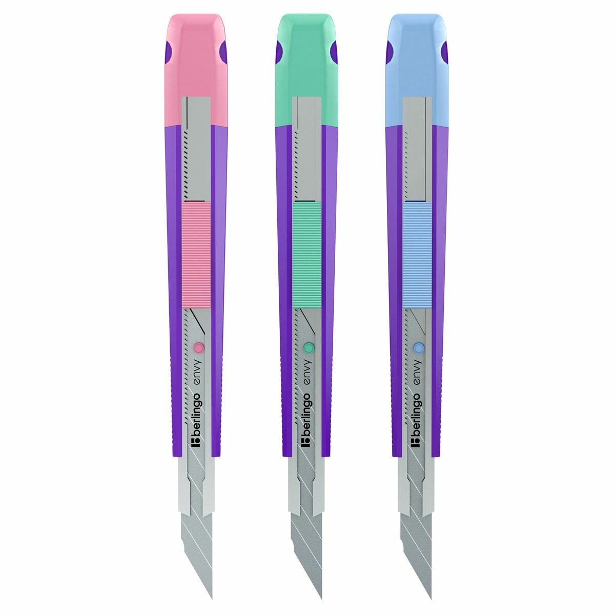 Купить Нож канцелярский 9мм Berlingo Envy, auto-lock, металл. направл, европодвес (BM4141)