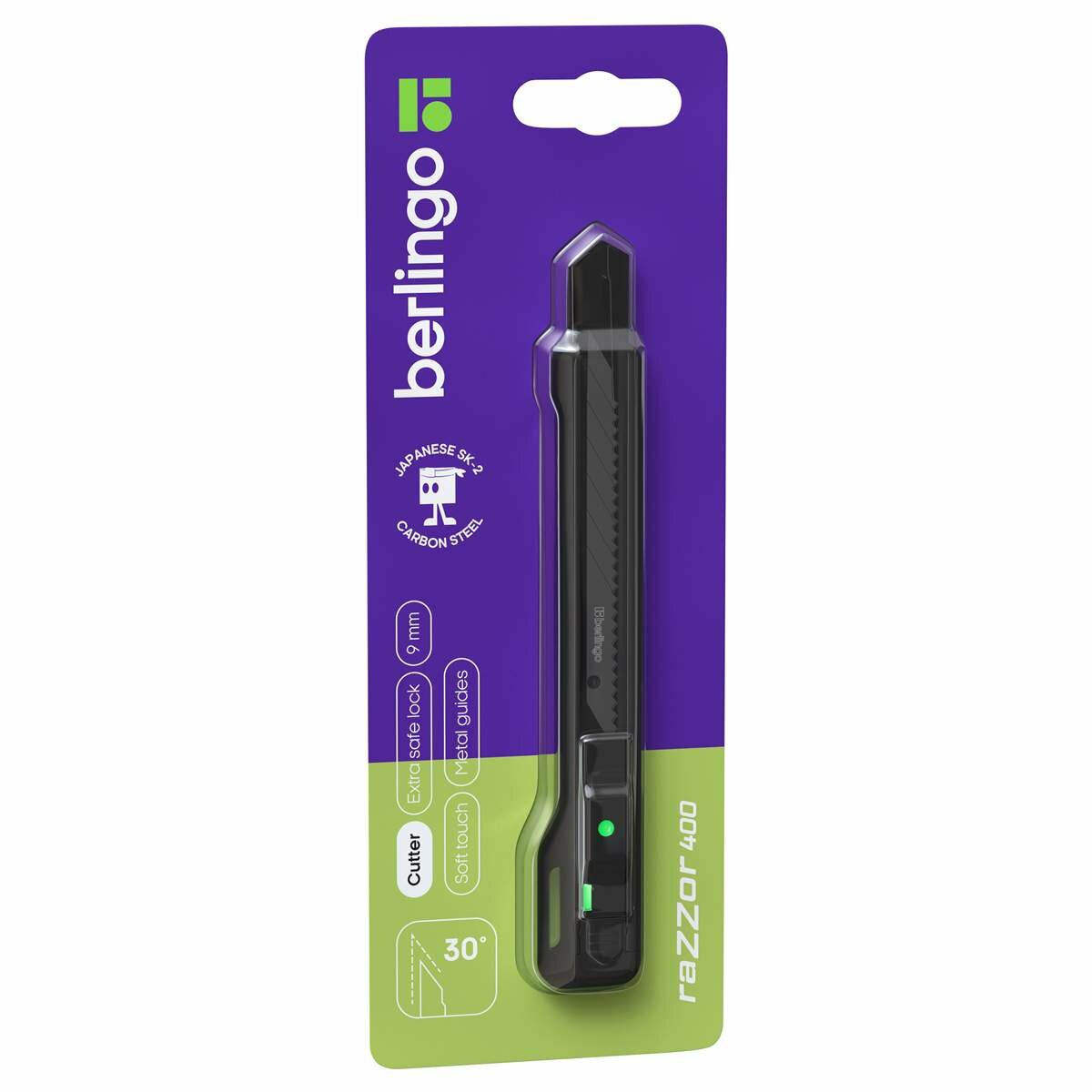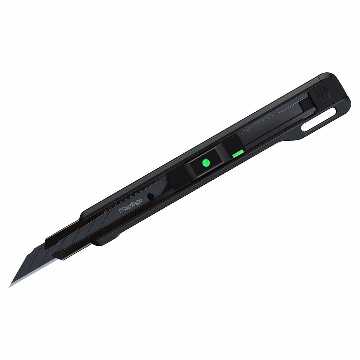 Нож канцелярский 9мм Berlingo "Razzor 400", черное лезвие, auto-lock, металл. направл, европодвес интересное: