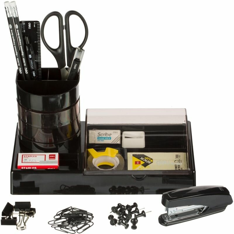 Набор настольный Deli E38254 16 предметов черный/ прозрачный , 1 шт.