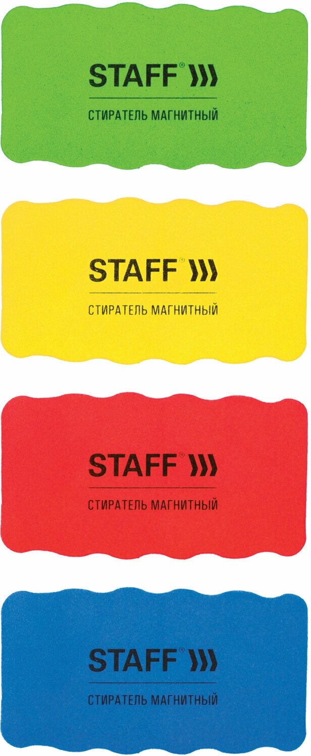 Стиратели магнитные для магнитно-маркерной доски, 57х107 мм, комплект 4 ШТ., STAFF "Basic", ассорти, 237512 - 3 шт.