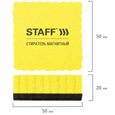 Купить Стиратели магнитные для магнитно-маркерной доски, 50х50 мм, комплект 10 ШТ, STAFF Basic, желтые, 237505C