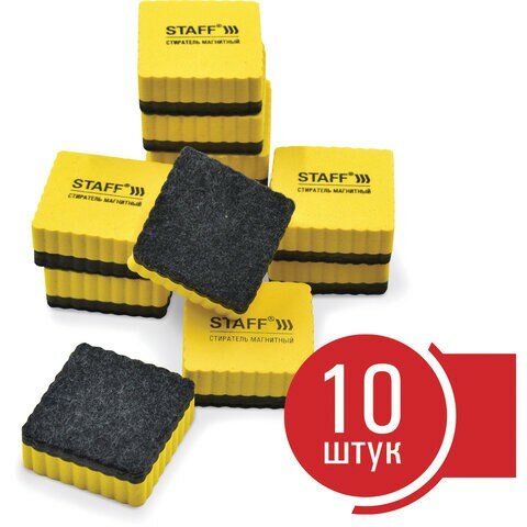 Стиратели магнитные для магнитно-маркерной доски, 50х50 мм, комплект 10 ШТ., STAFF Basic, желтые, 237505 Комплект : 1 шт .