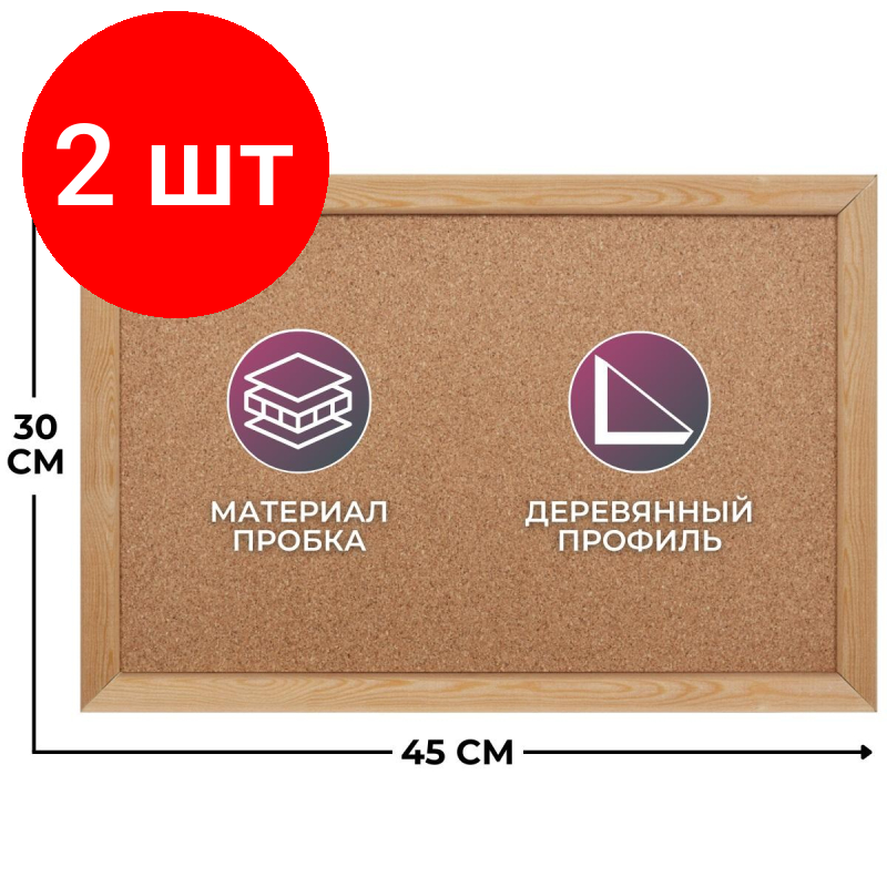 Комплект 2 штук, Доска пробковая 30х45 Attache Economy, деревян. рама