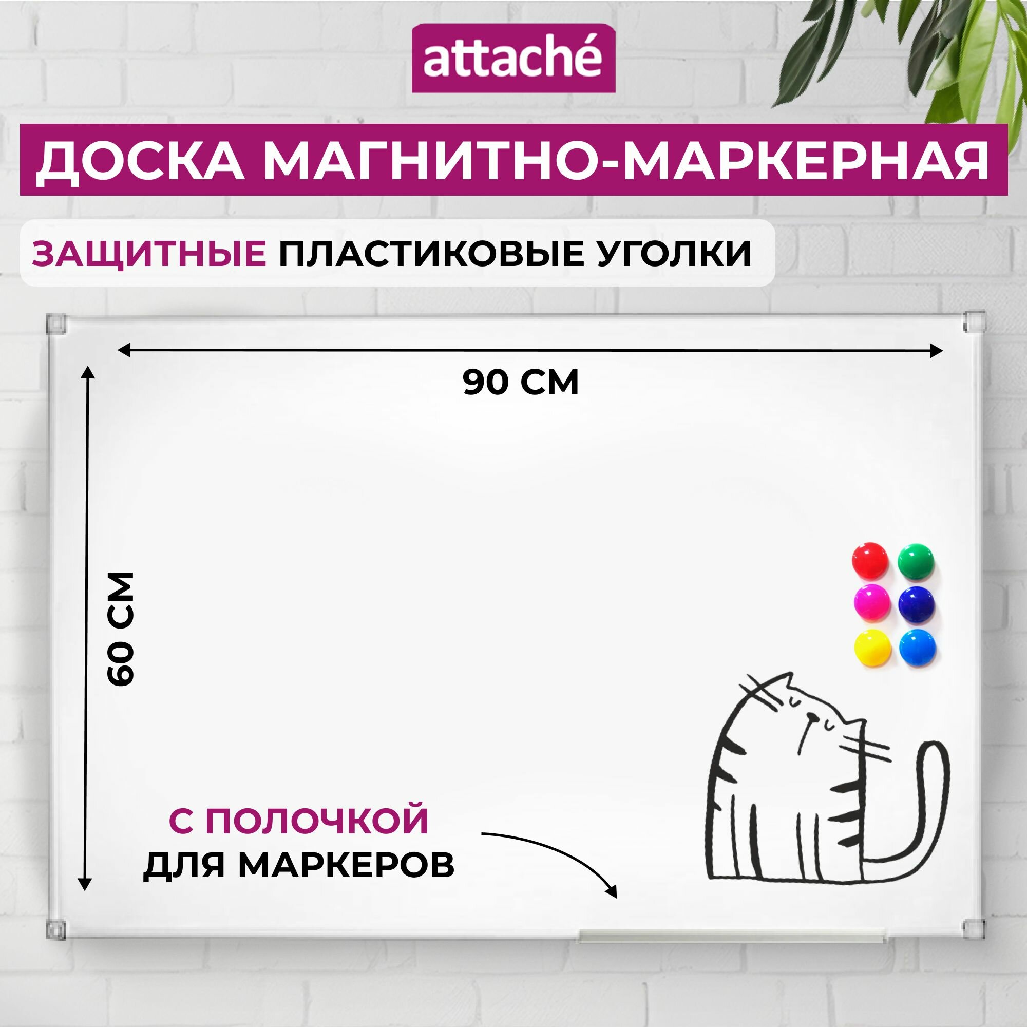 СохранитьДоска магнитная маркерная на стену Attache Economy, для рисования, 60x90 см, пластиковая рама интересное: