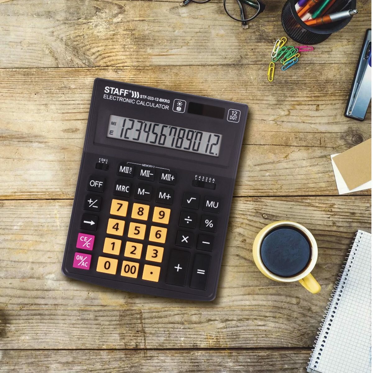 Калькулятор настольный STAFF PLUS STF-333-BKRG (200x154 мм) 12 разрядов, черно-оранжевый, 250460