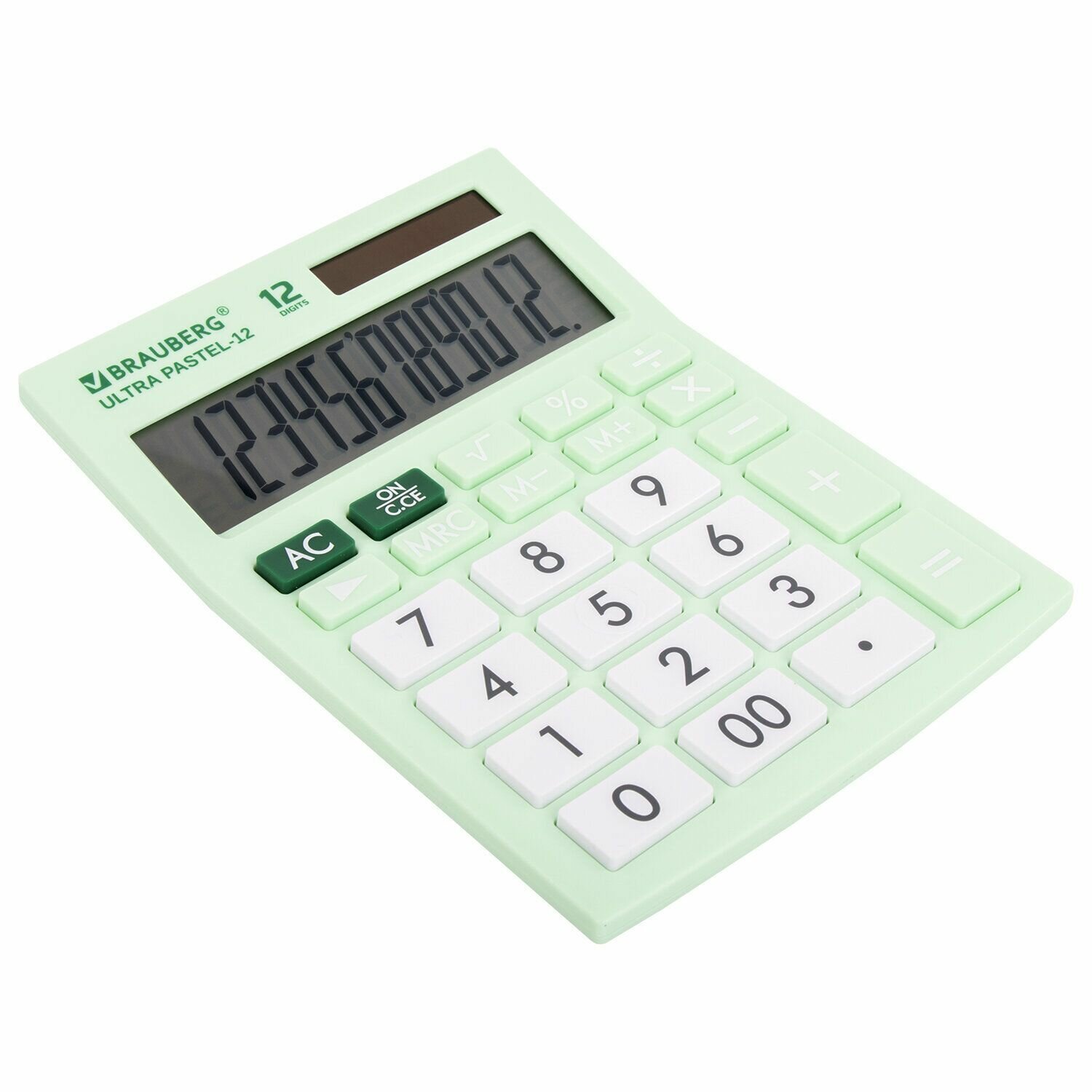 Купить Калькулятор настольный Brauberg Ultra Pastel-12-LG, 12 разрядов, двойное питание, мятный (250504)