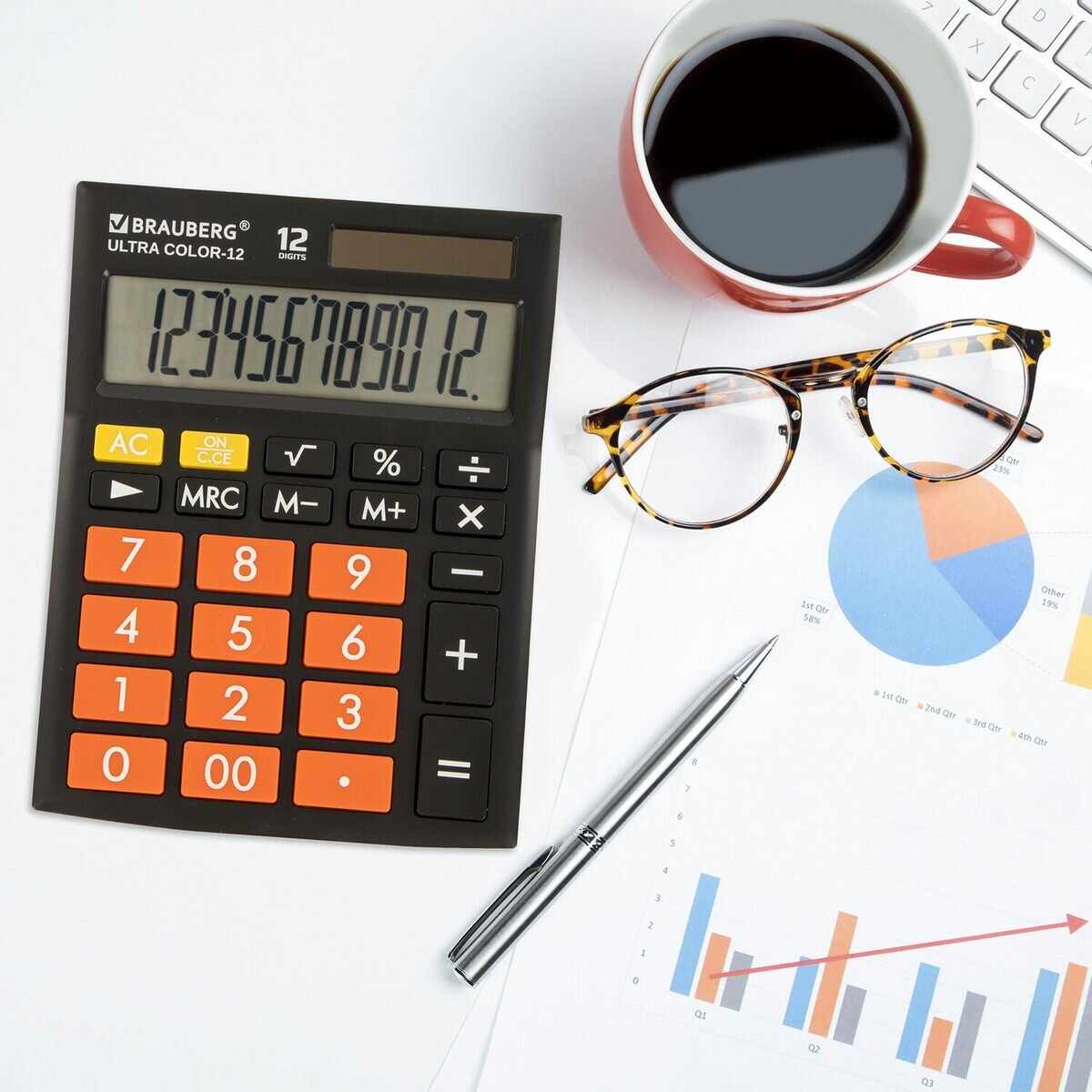 Калькулятор настольный Brauberg Ultra Color-12-BKRG, 12 разрядов, двойное питание, черно-оранжевый (250499)