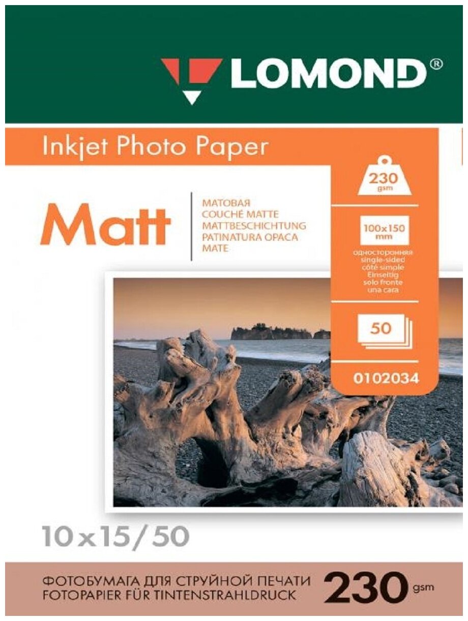 Фотобумага Lomond матовая односторонняя (0102034), 10x15 см, 230 г/м2, 50 л.