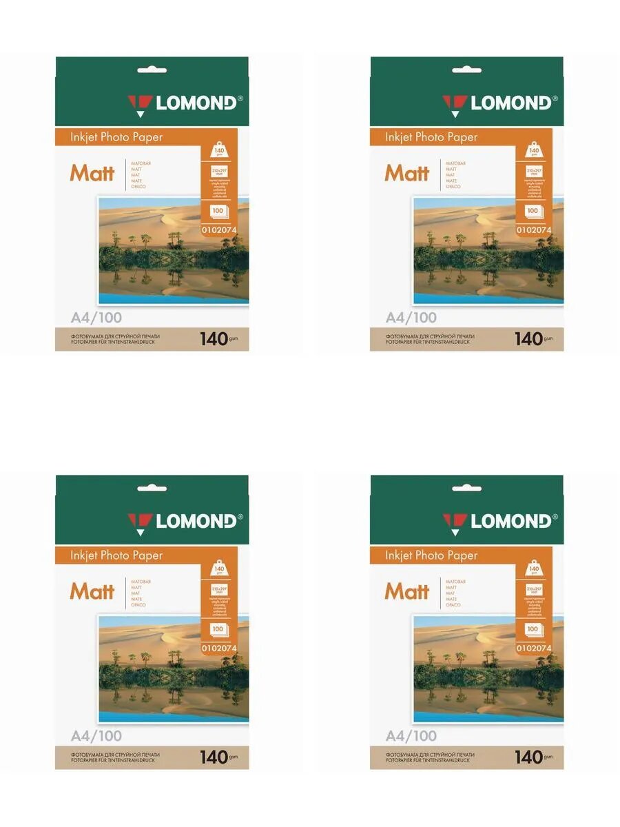 Фотобумага Lomond матовая, А4, 140 г/м2, односторонняя, 100 листов (102074)