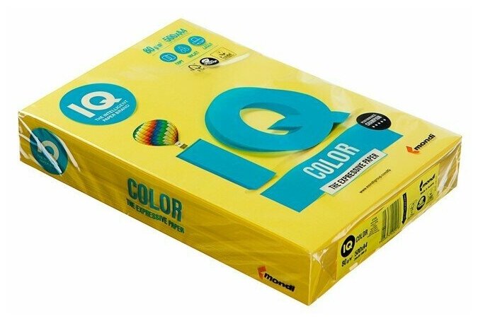 Бумага IQ "Color intensive" А4, 80г/м2, 500л. (ярко-желтый), 124065