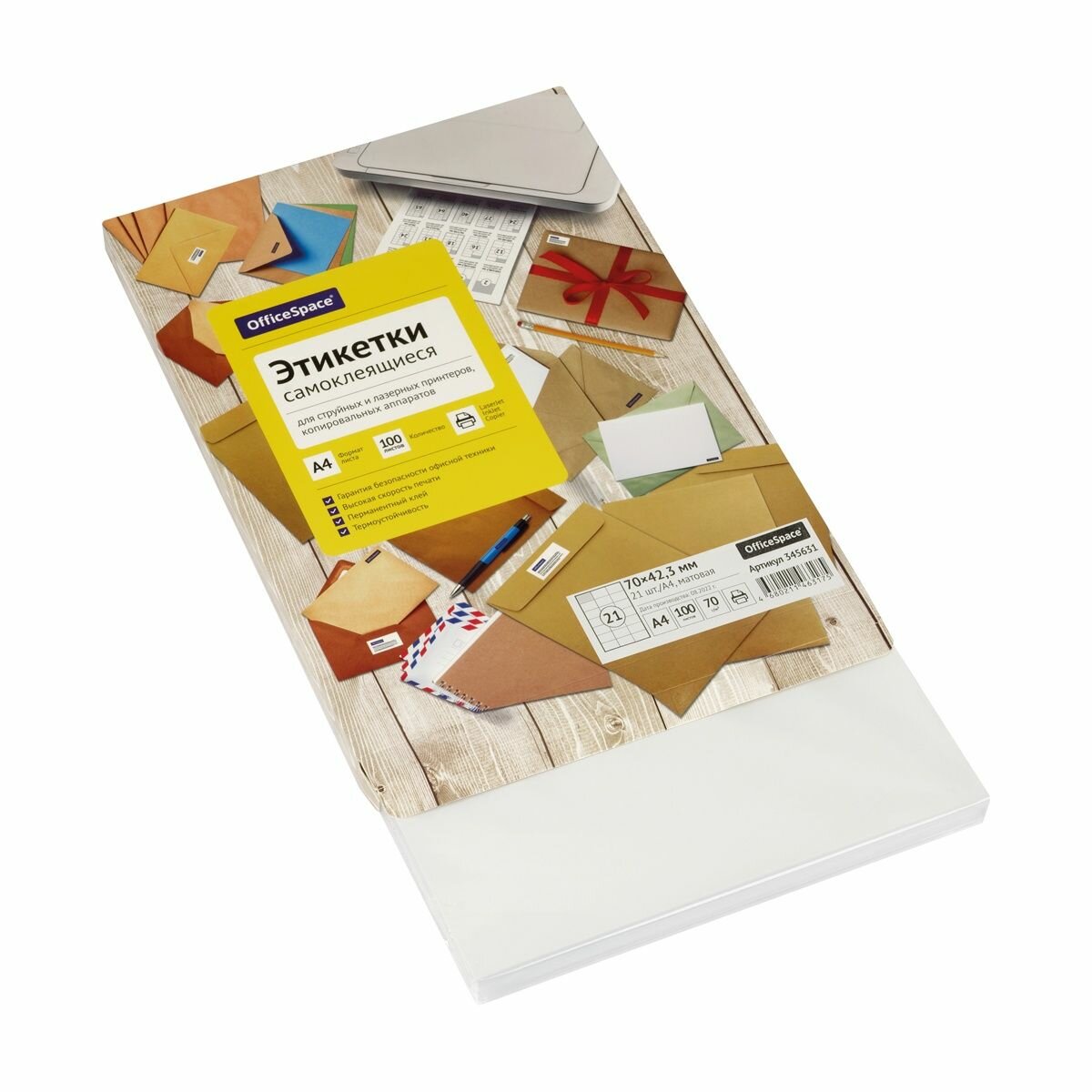 Этикетки самоклеящиеся А4 100л. OfficeSpace, белые, 21 фр. (70*42,3), 70г/м2 (арт. 260673)