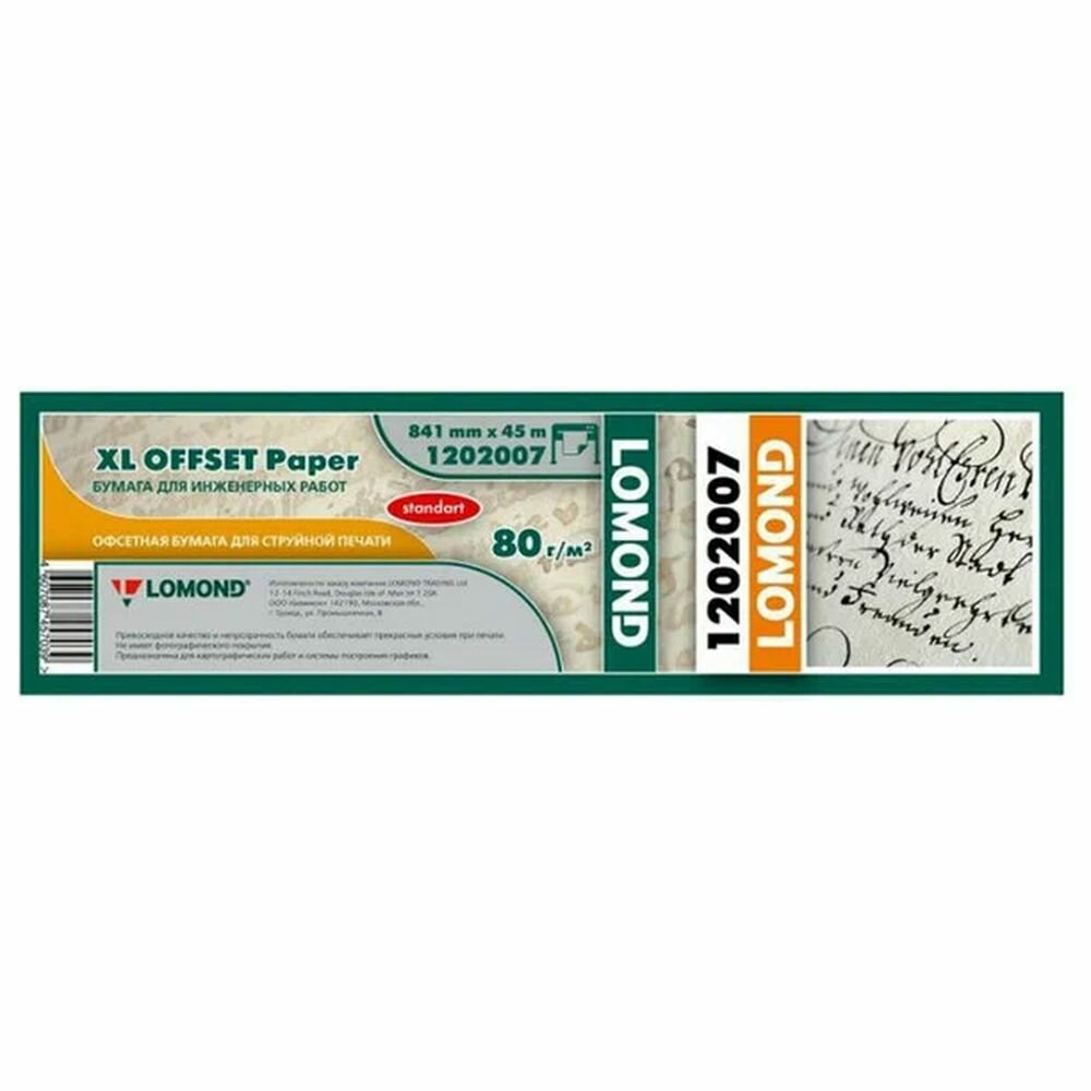 Бумага для плоттера офсетная Lomond, 297мм*175м, 80г/м2, вт. 76мм, 146%, "Стандарт"