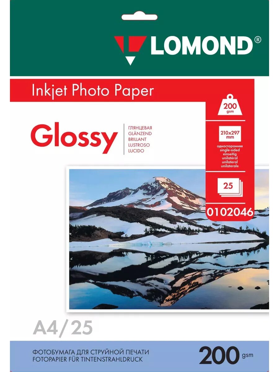 Фотобумага для струйной печати А4, 25 листов LOMOND, глянцевая односторонняя, блок 200 г-м² (0102046)