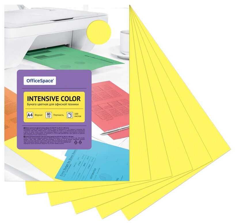 Бумага цветная OfficeSpace "Intensive Color", A4, 80 г/м?, 100л., (желтый), 1 шт