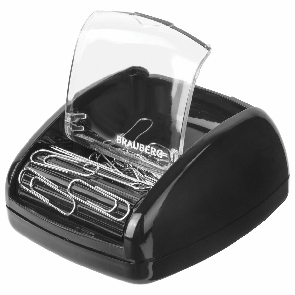 Brauberg Скрепочница магнитная с 30 скрепками, роликовый механизм подачи, чёрная