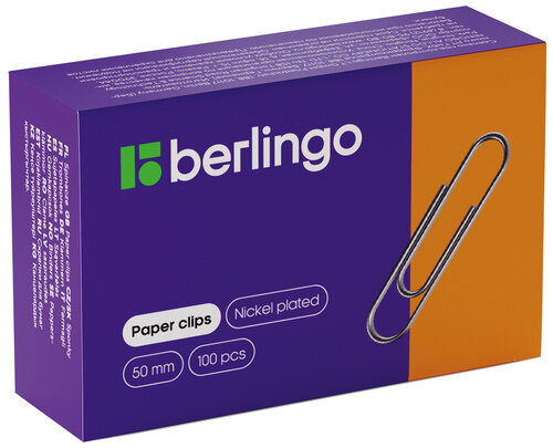 Купить Скрепки никелированные BERLINGO, 50 мм, 100 шт/уп, овальные