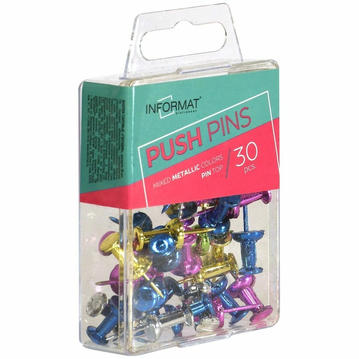 Кнопки силовые inформат, цветные металлик, 30шт., пластиковая упаковка