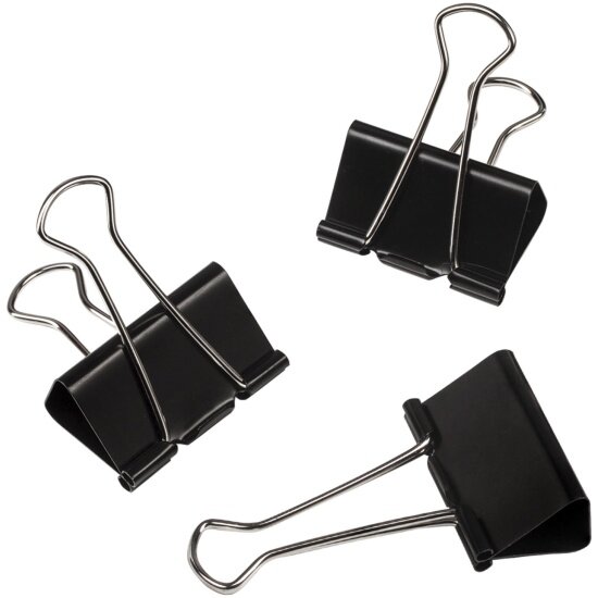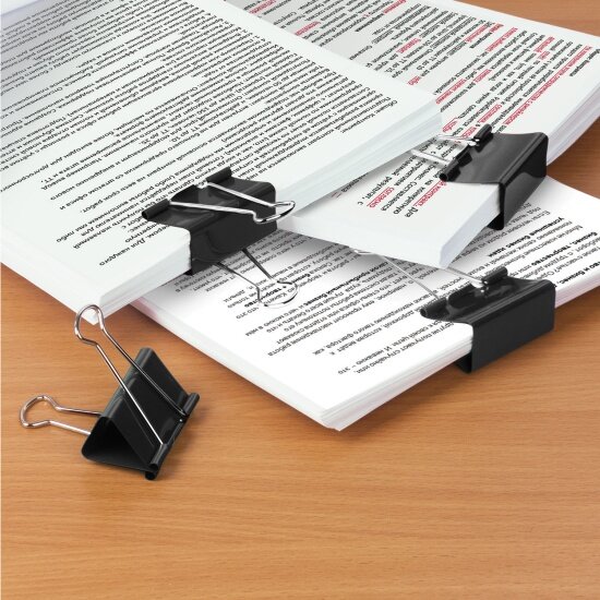 Зажимы канцелярские для бумаг для дома и офиса Staff Everyday, Комплект 12 штук, 41 мм, 200 листов, черные, 224609