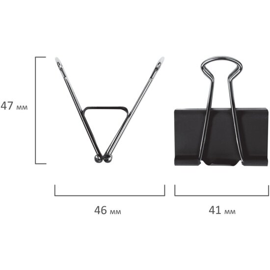 Набор 2 шт. Зажимы для бумаг STAFF" EVERYDAY", комплект 12 шт., 41 мм, 200 листов, черные, картонная коробка, 224609