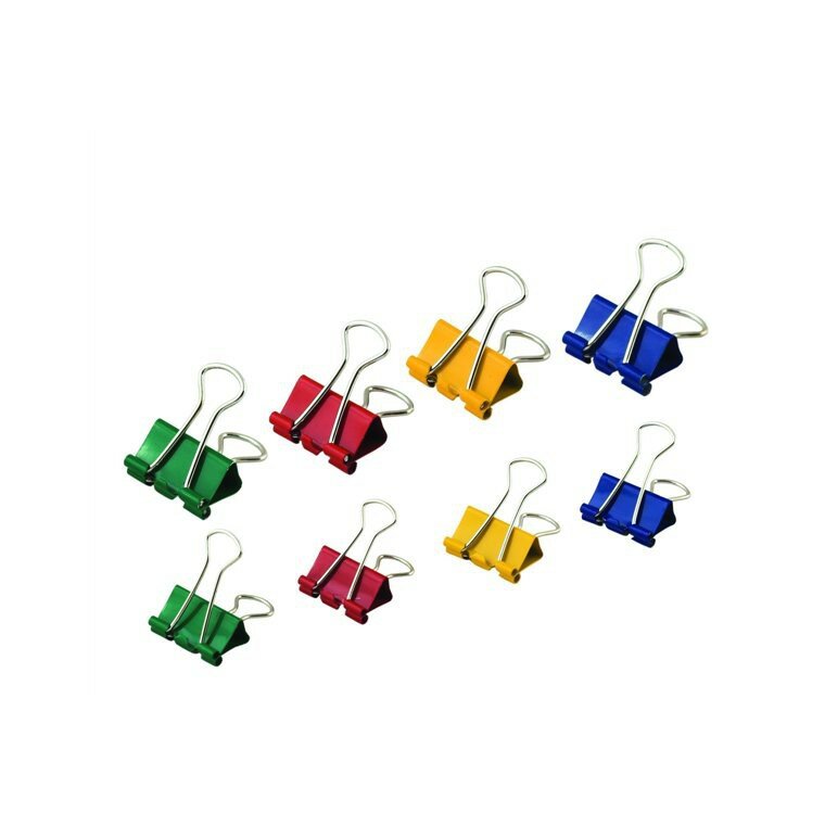 Набор зажимов для бумаг 41мм цветные 12шт/кор., скрепл.200л. в карт.кор