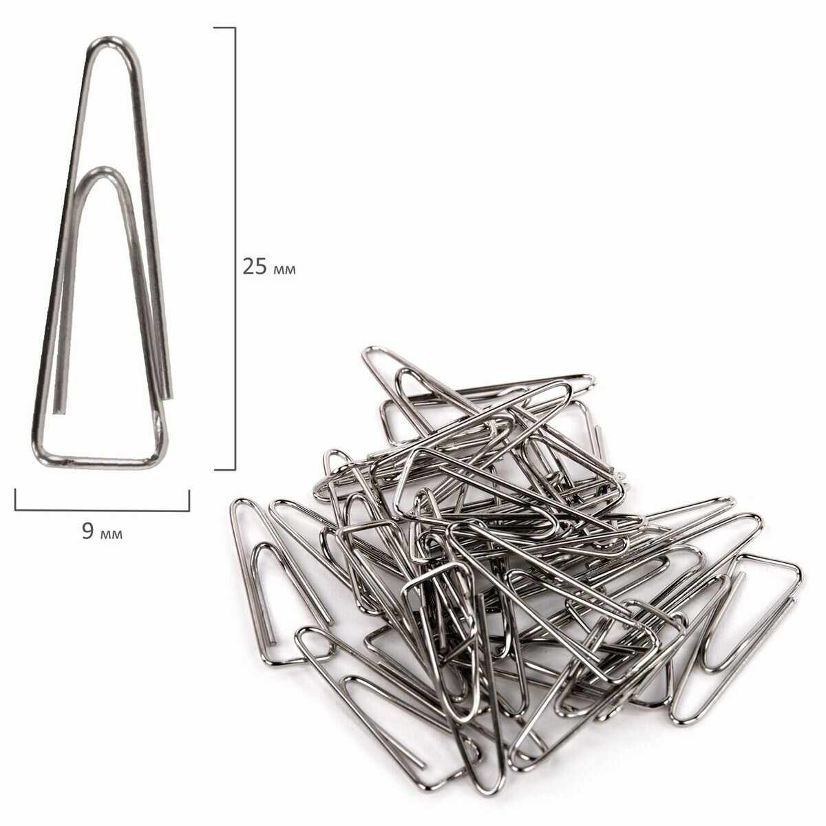 Скрепки Офисная планета 25 мм, никелированные, треугольные, 100 шт (222043)