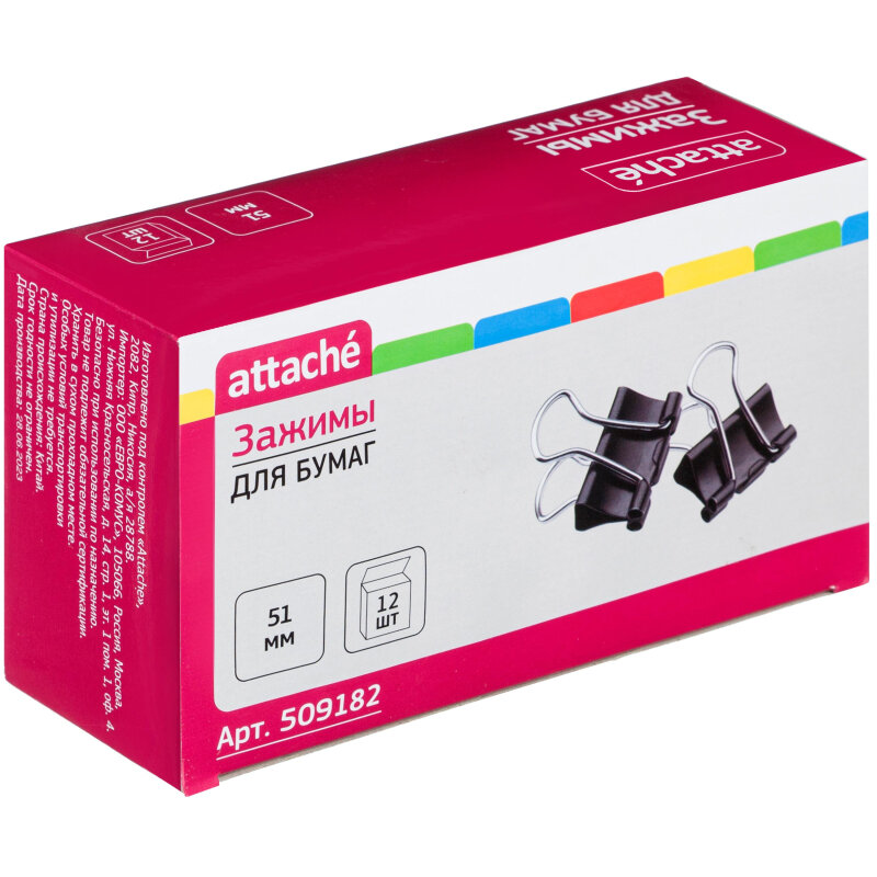 Купить ATTACHE 509182 509182 Зажимы для бумаг 51мм 12шт/уп Attache, в картонной коробке